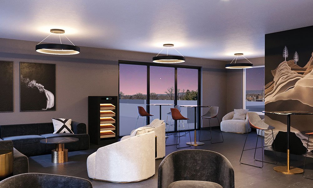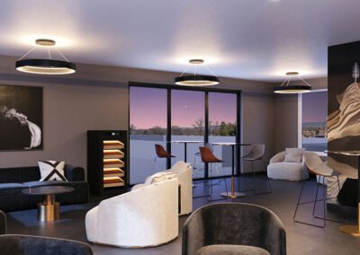 Perched atop The Titan Union, the Skyline Lounge is an expansive open-air rooftop terrace that blends urban sophistication with relaxed luxury. With generous space to roam and unwind, the lounge offers a wide variety of seating options to suit every mood—whether you’re sinking into a plush sofa with friends or enjoying a quiet moment in a secluded corner. The thoughtfully arranged seating areas allow for both social gatherings and peaceful solitude, all set against a backdrop of curated landscaping and ambient lighting that makes the space feel warm and inviting.